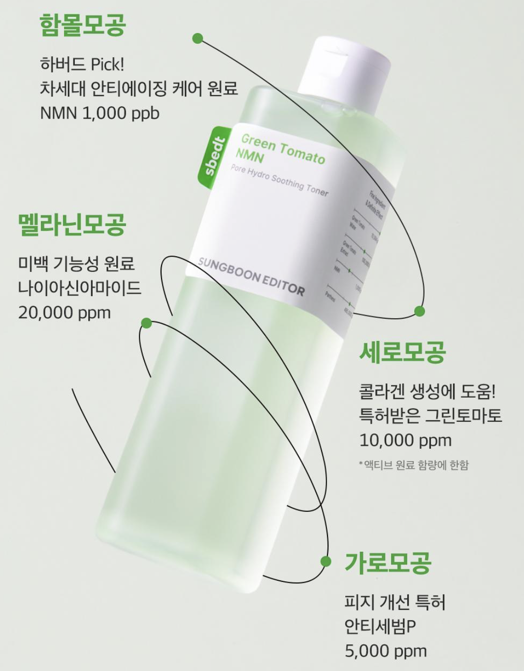 全新升級版|韓國 SUNGBOON EDITOR 綠蕃茄NMN 深零毛孔精華 舒緩爽膚水|Green Tomato NMN Pore Hydro Soothing Toner