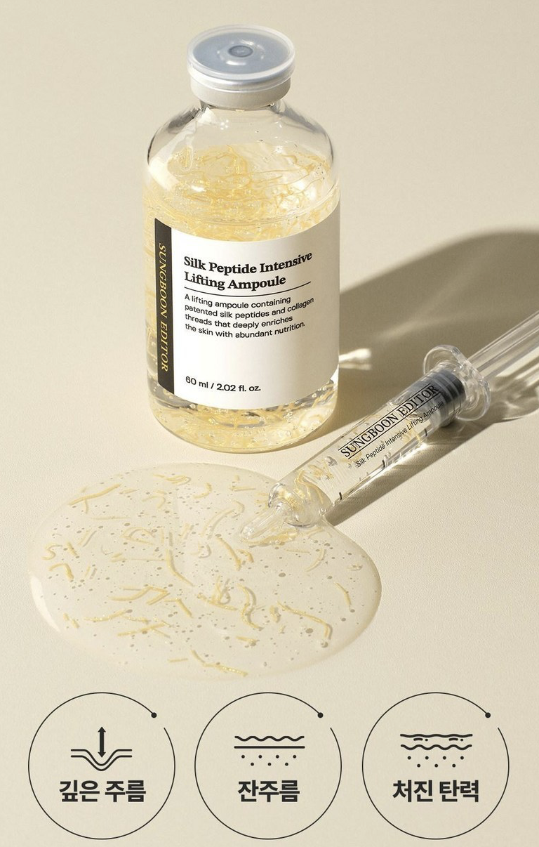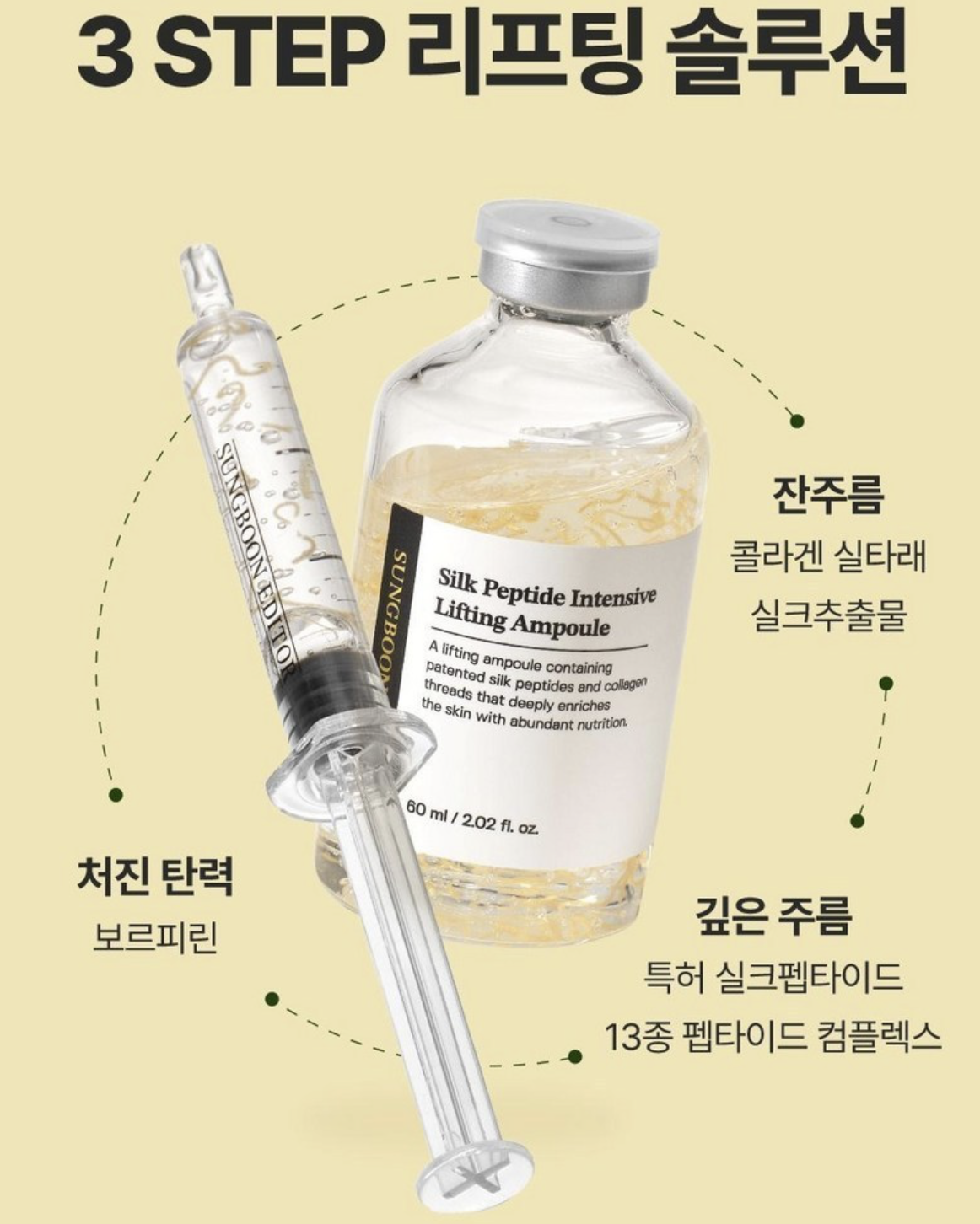 撫平皺紋|韓國SUNGBOON EDITOR 胜肽金絲膠原蛋白抗老精華|Silk Peptide Intensive Lifting Ampoule