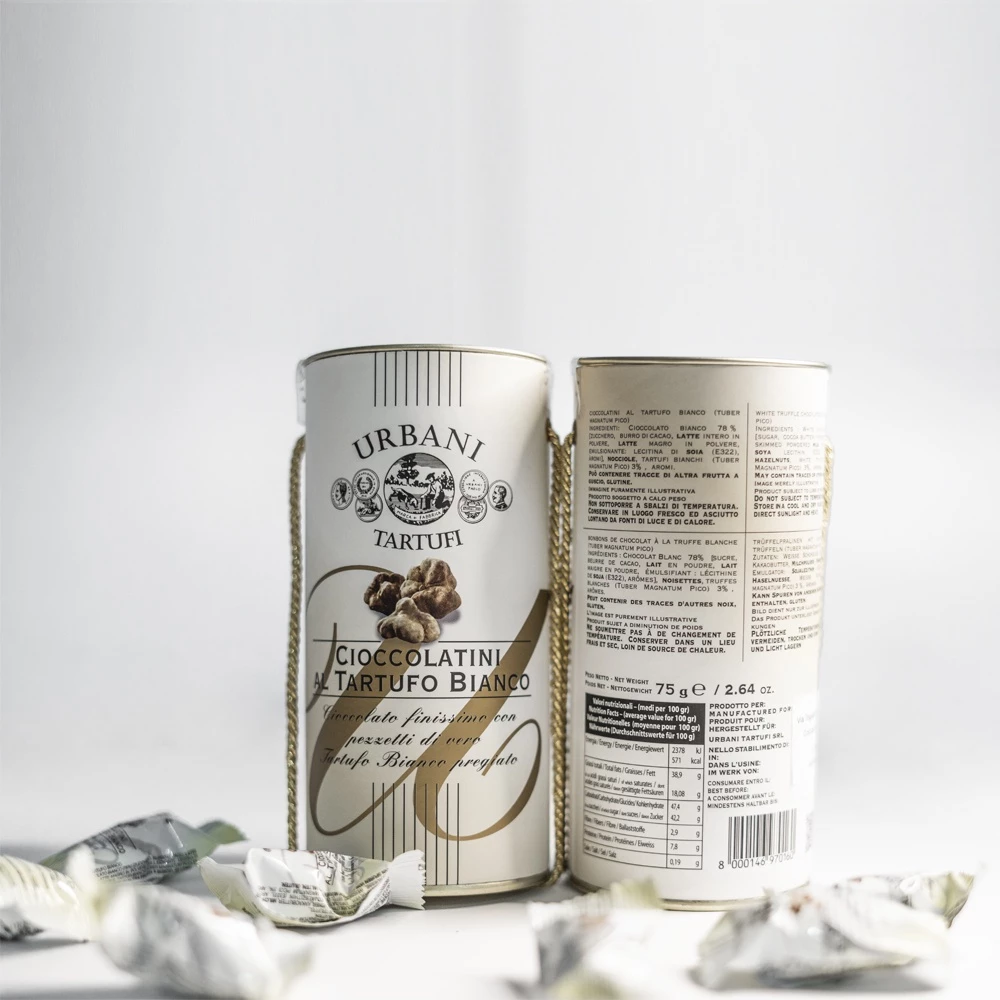 ✨ 世界第一松露品牌 URBANI ✨ 由「松露教父」Paolo Urbani — 義大利松露家族第四代傳人 — 親手打造。黑松露香氣濃郁,白松露更為稀有,帶有淡淡奶香,奢華滋味一試難忘。 這款巧克力採用 義大利 URBANI 松露巧克力製成,與咖啡、茶、葡萄酒、香檳完美配搭 🥂。獨立包裝設計,方便隨時享用或分享。無酒精配方,無論自用或送禮,都能展現高級品味。 🌟 2款選擇 ▪️ 黑松露巧克力:濃郁馥郁,層次感強烈 ▪️ 白松露巧克力:稀有珍貴,淡雅奶香 📦 包裝尺寸 & 內容物 ▪️ 內含:15片(75g) ▪️ 尺寸:7 x 7 x 15cm 成分: ▪️ 黑松露巧克力:巧克力、榛果醬、榛果丁、黑松露油、乳化劑(含乳製品及大豆) ▪️ 白松露巧克力:巧克力、榛果醬、榛果丁、白松露油、乳化劑(含乳製品及大豆) 產地:義大利 🛡️ 保存方法 請置於陰涼乾爽處,避免高溫潮濕;開封後請盡快食用。