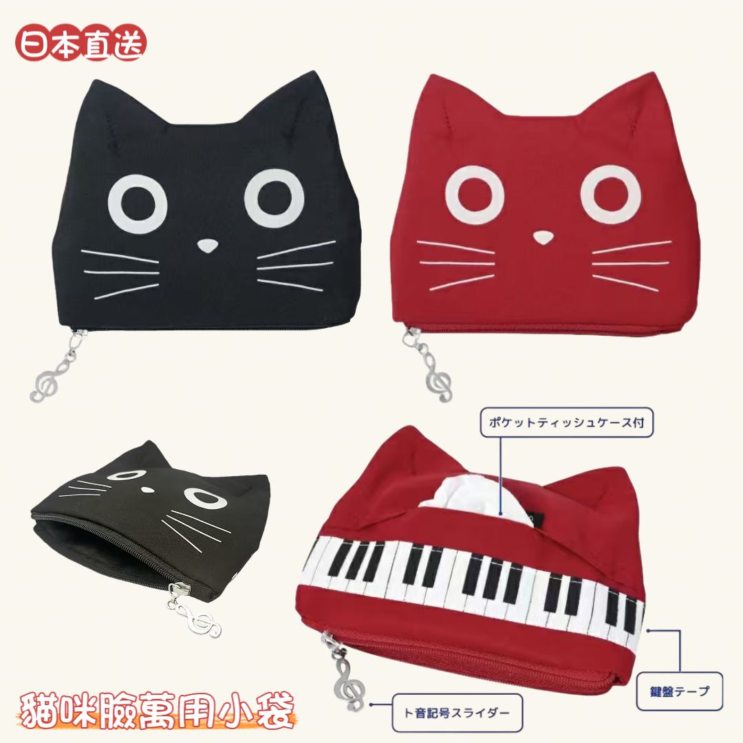 喵~貓奴注意!呢款超可愛 🐱 貓咪臉部收納袋,專為音樂迷設計,由日本直送,質感滿分,實用又有型! 💄🧻 小巧設計,輕鬆收納紙巾同小化妝品,無論係日常出街定旅行都啱用! 🎹🎼 特別配有鍵盤膠帶 + 高音譜號滑塊,音樂元素滿滿,送禮自用都一流~係音樂愛好者嘅夢幻小物! 🖤❤️ 兩款顏色任你揀: 黑色 紅色 📏 尺寸:約14.5×9.5cm(唔計耳仔) 🧵 材質:純色聚酯(內襯絎縫) 🧶 內裡:牛津聚酯纖維