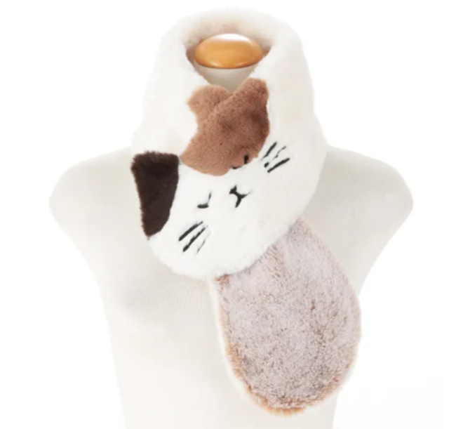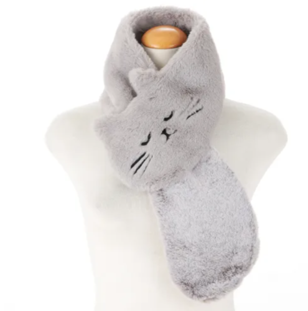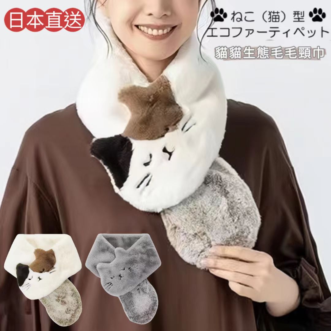 日本直送 貓貓生態毛毛頸巾|秋冬保暖|可愛貓臉設計|柔軟舒適|2色選擇