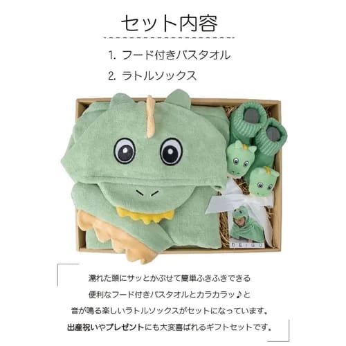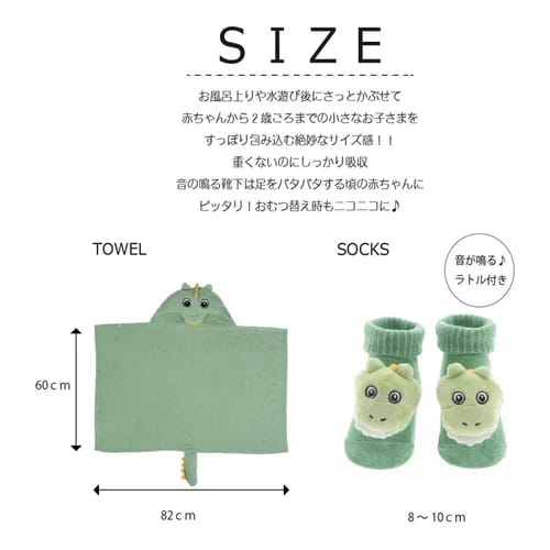 日本直送 DEIGO人氣寶寶套裝 👶🎁|連帽浴巾 + 搖鈴襪
