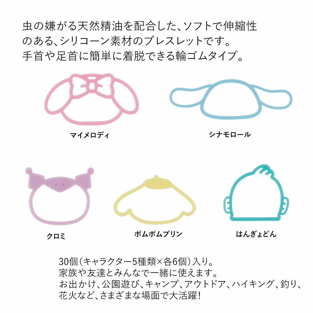 日本直送Sanrio 矽膠驅蟲環手環 (30入)|天然精油|蠓蟲剋星|戶外必備