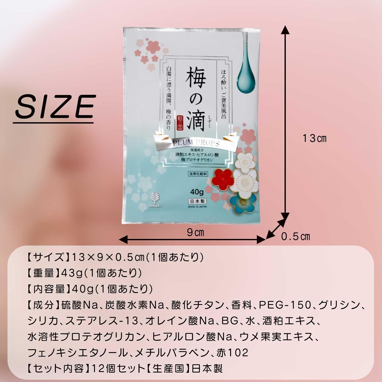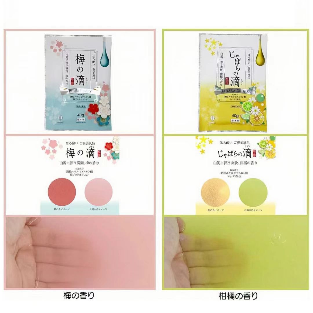 想喺家中享受日本溫泉般嘅放鬆感覺?呢款 日本製微醺沐浴鹽套裝 就係你嘅最佳選擇!集合 梅子香同柑橘香兩款人氣味道,幫你舒緩身心、滋潤肌膚,打造居家 SPA 體驗。💆‍♀️✨ 內容物 01 梅子香:馥鬱梅子香氣🍑 ▪️ 蘊含和歌山縣特產南港梅子醋提取嘅梅子蛋白聚醣 ▪️ 滋潤肌膚同時散發甜美清爽香氣,舒緩疲憊心情 ▪️ 保濕成分:酒糟萃取物、玻尿酸、梅子蛋白聚醣 02 柑橘香:清新柑橘乳白色沐浴添加物🍊 ▪️ 採用和歌山縣水果「加巴拉」果皮精華 ▪️ 果皮同酒糟保濕成分融合,帶來愉悅微醺感 ▪️ 保濕成分:酒糟萃取物、玻尿酸、加巴拉果皮 使用方法 ▪️ 將一包(40克)加入約180-200公升浴缸水中,攪拌均勻即可享受香氣滿溢嘅放鬆沐浴。🛀 包裝尺寸 淨重:40g x 12包