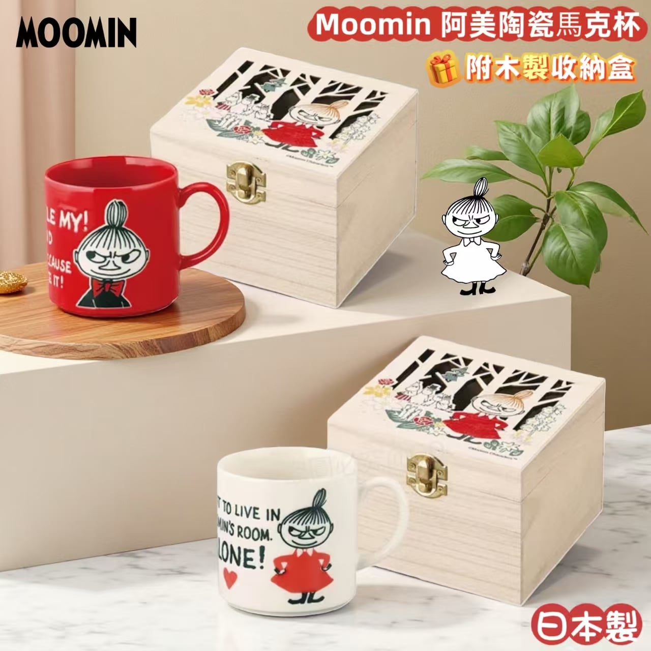 想搵一份精緻又有心思嘅禮物?💝 廣受歡迎嘅 木盒馬克杯系列 又有新設計啦!🎉今次以 Moomin 中人氣角色 「小美」(阿美) 為主題, 馬克杯裝在一個精美木盒入面📦,木盒採用 雷射切割 + UV印刷工藝🎨,圖案細緻又有質感。 無論送禮俾親友,定係自用收藏,都係一個超級好選擇!✨ 🎀 2款選擇 A. 紅色 ❤️ B. 象牙色 🤍 📏 包裝尺寸 & 規格 ▪️ 馬克杯:約直徑 8 x 高 8.5 cm ▪️ 容量:約 350ml,啱晒日常飲茶、咖啡 ☕ ▪️ 包裝盒尺寸:約 14 x 14 x 11 cm ▪️ 材質:高質瓷器 ▪️ 產地 : 日本