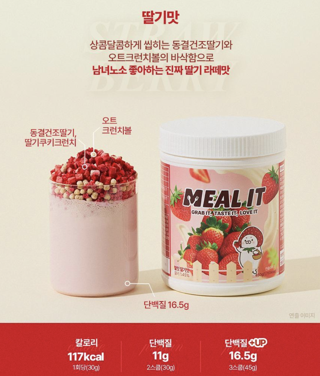 無論你係健身族、減肥族、忙碌上班族? 代餐奶昔超方便、超飽肚 快速搞掂一餐所需嘅均衡營養💮 即沖即飲,低卡高蛋白💪🏋🏻‍♀️ 輕盈罐裝仲有 4 款口味俾你揀,日日唔同 feel😋 🥛 高蛋白配方:富含有16g豐富蛋白質,幫助肌肉修復與增長 🥦 均衡營養:多種維他命、礦物質同膳食纖維,支持腸道健康 📉 低卡路里:經過精心計算,輕鬆達成熱量赤字,Keep Fit 最佳幫手 🕒 即沖即飲:只需加水或牛奶,30秒完成,隨時隨地補充營養 🌿 均衡營養:低卡路里、含膳食纖維,幫助控制食量,維持健康飲食習慣 - 4種口味任選 - 🌾 穀物 🌾 ‣ 韓國產的7種穀物 + 黑米、燕麥脆脆 ‣ 帶有淡淡的麥香,穀物顆粒感厚實,給人健康、飽足的感覺 🍌 香蕉朱古力 🍫 ‣ 香甜的香蕉果香與濃郁的朱古力融合+蛋白質脆脆 ‣ 口感順滑,濃厚回甘,層次感豐富 🩶 黑芝麻 🩶 ‣ 濃郁的芝麻香氣,帶有烘焙後的堅果香 +蛋白質脆脆 ‣ 入口厚實滑順,香氣持久,像傳統芝麻糊的現代化演繹 🍓 草莓 🍓 ‣ 清新果香,酸甜平衡,帶有天然莓果的香氣+ 燕麥脆脆 ‣ 男女老少都喜愛,像初夏的清爽感,輕盈不膩,帶來活力與愉快心情 💡 使用建議: 健身後補充,幫助肌肉修復 減肥代餐,控制卡路里攝取 忙碌時當早餐或下午茶,快速又方便 🛒 立即入手 Mealit 食事管理蛋白質奶昔,輕鬆管理身材,健康生活由此開始 規格:450g/罐|4種口味可選 產地:韓國 📌 香港蛋白粉推薦|韓國代餐奶昔|高蛋白飲品|健身必備|減肥代餐|低卡高蛋白|香港健身飲食|韓國原裝蛋白奶昔|Mealit蛋白奶昔