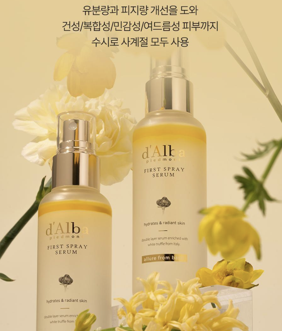 d’Alba White Truffle First Spray Serum 韓國空姐幾乎人人手上都有一支 好hit好好用,深受大韓空姐嘅喜愛💓 所以簡稱空姐噴霧👩🏻‍💼 機艙空氣干燥、缺水,皮膚容易乾燥且水油失衡🫠🥲 一般保養品難以被肌膚充分吸收~ 這支精華噴霧就能夠達到真正保養功效⭐️ ✔️極速舒緩皮膚乾燥緊繃💧 ✔️水油平衡,達到長效保濕效果 ✔️即時補水,回復彈滑水潤肌 ✔️高濃度白松露精華為主要成分 ✔️改善肌膚彈性同提亮去黃✨ ✔️膠原蛋白加強保濕 ✔️27種植萃成分,提亮修復 ✔️通過純素認證及防過敏測試,溫和使用唔驚刺激 ✔️噴霧細緻,日常保養或妝前都可使用 長期係有冷氣地方的你快快入手補水啦👍🏻 產地:韓國