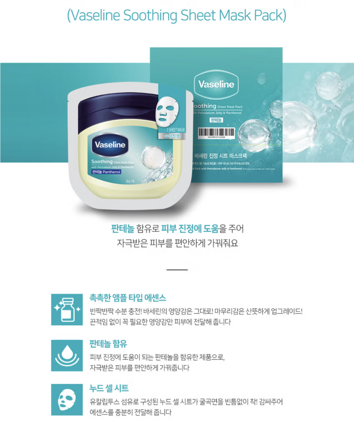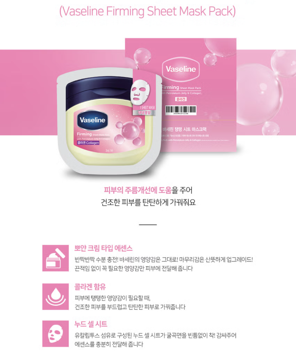 韓國製 Vaseline 凡士林 高效保濕 面膜系列 1片 / 裝|Moisturizing / Hydrating / Nourishing / Soothing / Collagen Firming Sheet Mask