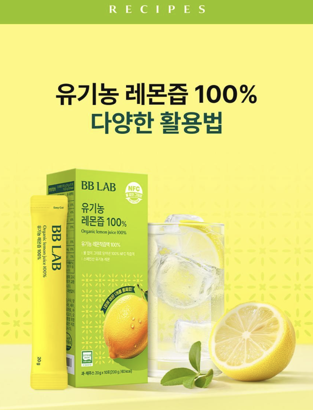 韓國 BB LAB 西班牙 有機檸檬 濃縮汁 10包/盒|美白抗氧|Pure Organic Lemon Juice 100%