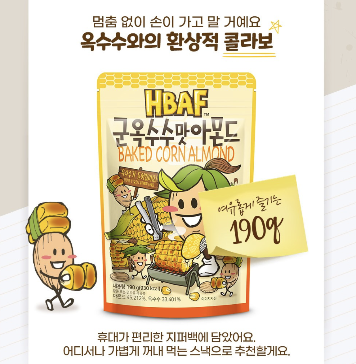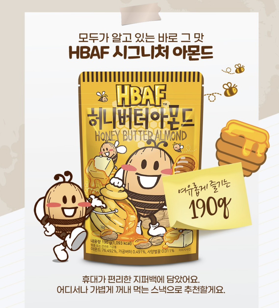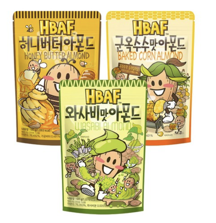 韓國 HBAF 蜂蜜牛油 / 日式芥末 / 烤粟米 杏仁 190g|Honey Butter / Wasabi / Baked Corn Almond