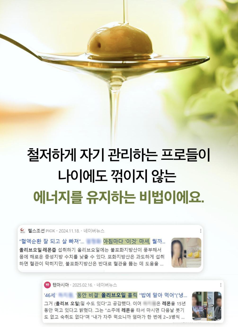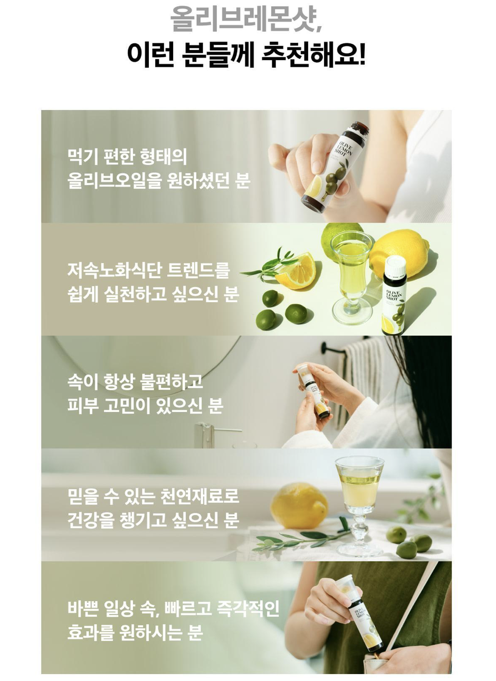 最近韓國明星們很流行的橄欖油保養 直接幫你把橄欖油還有檸檬搭配在一起🍋🫒 每天一瓶,補滿「多酚抗氧力」✨ 西班牙頂級 Picual 特級初榨橄欖油+檸檬維他命C 喚醒代謝、提亮氣色、補充滿滿元氣🌞 💛 一瓶=約5匙橄欖油多酚含量 🍋 清新檸檬香氣、口感清爽無負擔 🧃 小瓶設計,一Shot即飲超方便 🌿 世界級好油代表 來自西班牙最大橄欖產區的 Picual 品種 低酸度、高多酚,是頂級橄欖油中的冠軍👏 💧 雙層抗氧組合 檸檬水層:維他命C+植物黃酮 橄欖油層:多酚+維他命E 水×油雙抗氧,打造由內而外的保護力💪 ✨ 新鮮封存設計 植物性膠囊包裝隔絕氧氣 鎖住橄欖精華活性,每天一顆就搞定! ☀️ 飲用方式 早晨空腹喝最有效 打開瓶蓋,取出橄欖膠囊+檸檬Shot一起服用 建議連續飲用1個月以上,代謝力UP、膚況亮起來✨ 🫒🍋 橄欖油×檸檬超級功效 ① 排毒啟動早晨力 潤腸助蠕動+促進代謝,空腹喝最順暢💨 ② 抗氧提亮美肌力 多酚+維E+維C三重抗氧,亮出由內而外的光澤肌✨ ③ 守護肝臟與血管健康 橄欖油降壞膽固醇、檸檬淨血護肝,循環更輕盈💚 ④ 提升免疫&每日活力 維他命C搭配好脂質,促進吸收、穩定能量⚡ 💭 特別適合 ・想改善腸胃、排便不順的人 ・熬夜肌、想提亮氣色的人 ・想培養早晨保養儀式感的人 每天早上,一瓶開啟你的清新代謝力🌞🫒🍋 規格:25ml / 支