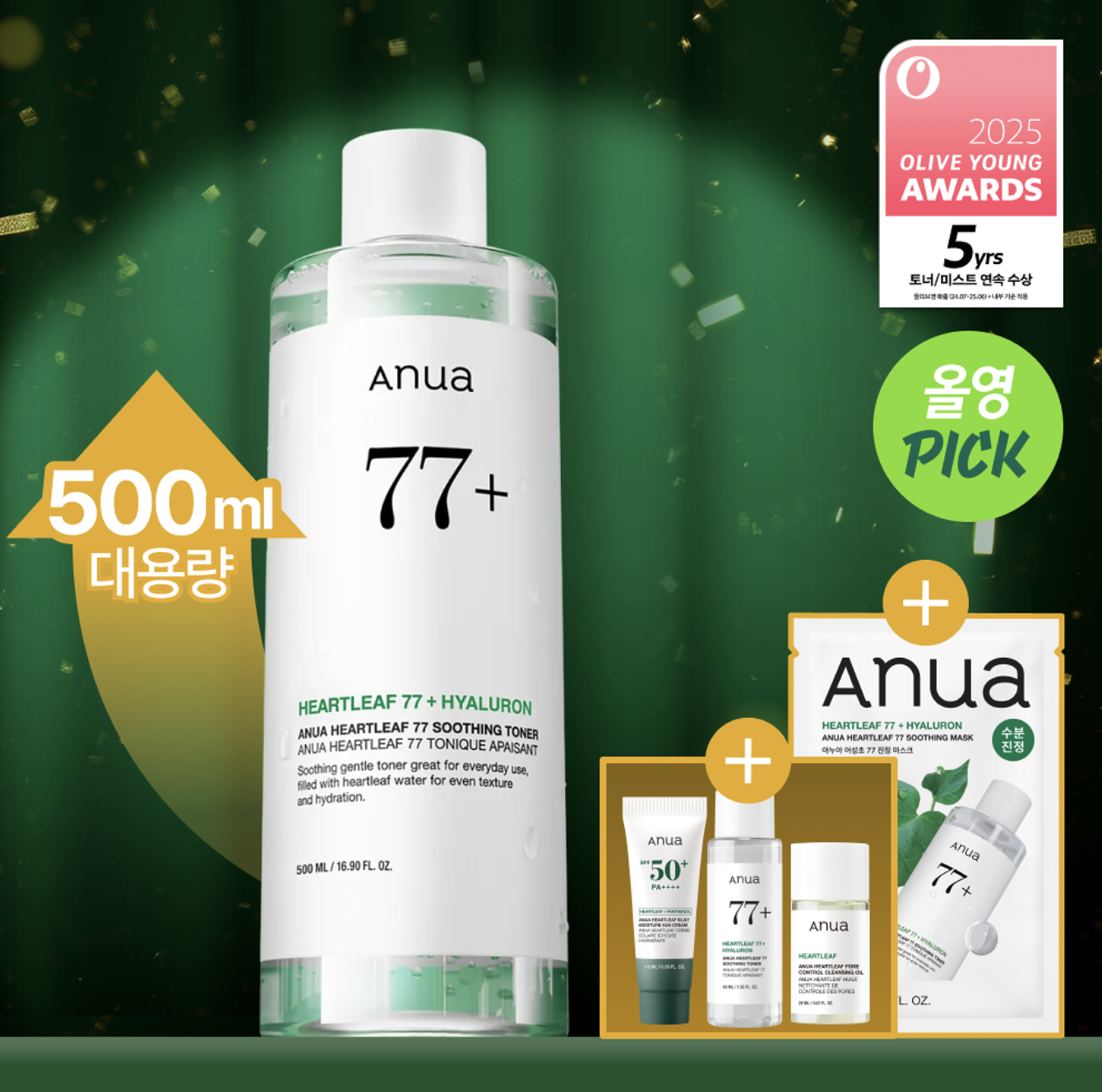 韓國Anua 77% 魚腥草舒緩鎮靜 保濕爽膚水 500ml 增量裝 套裝|Heartleaf 77% Soothing Toner