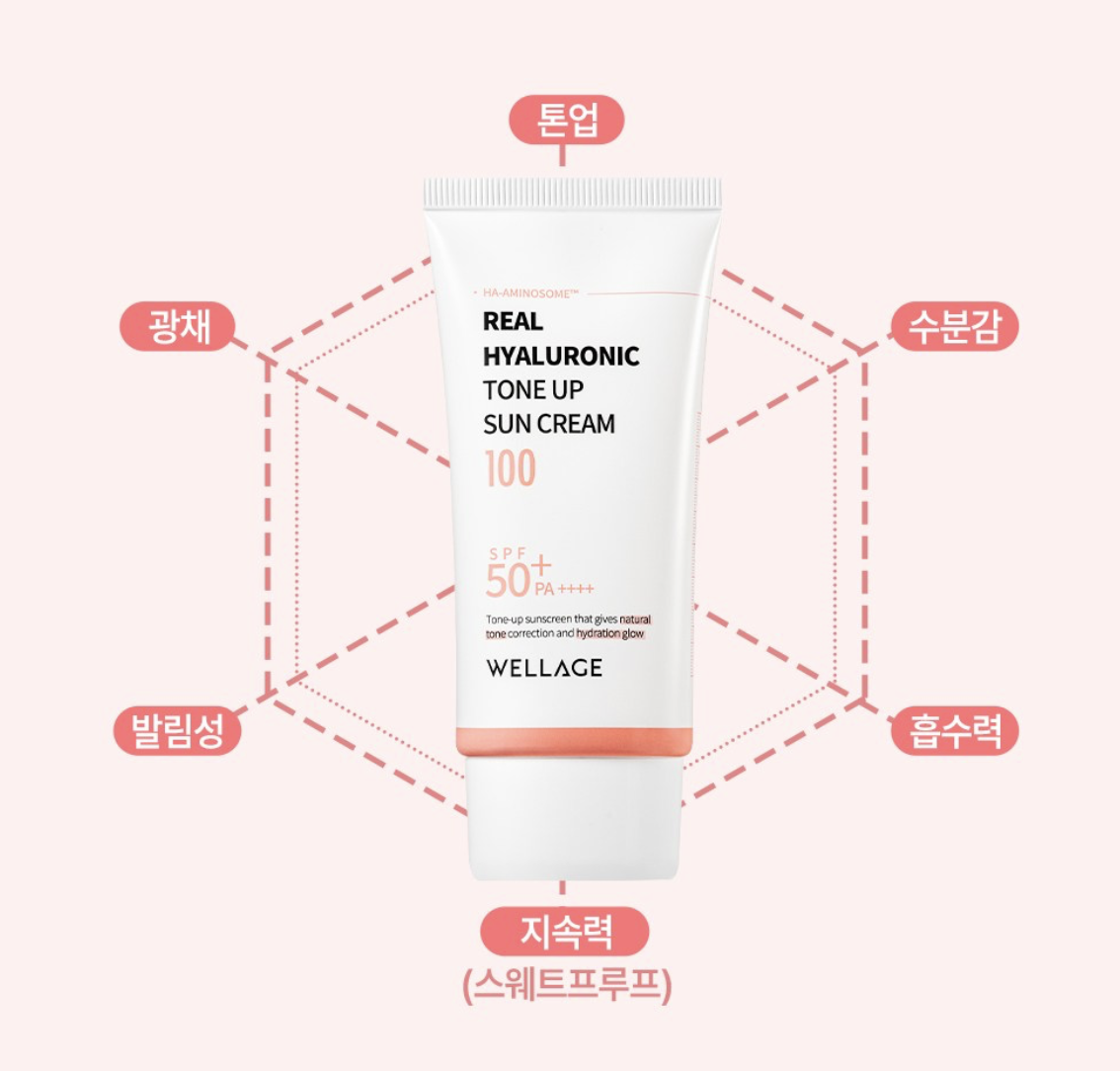 韓國Wellage 低分子 透明質酸 亮白防曬 50ml|Real Hyaluronic Tone Up Sun Cream