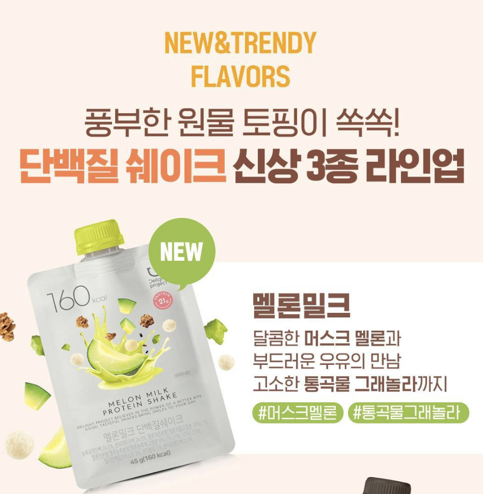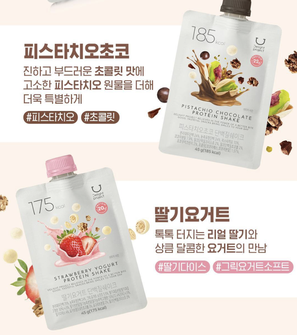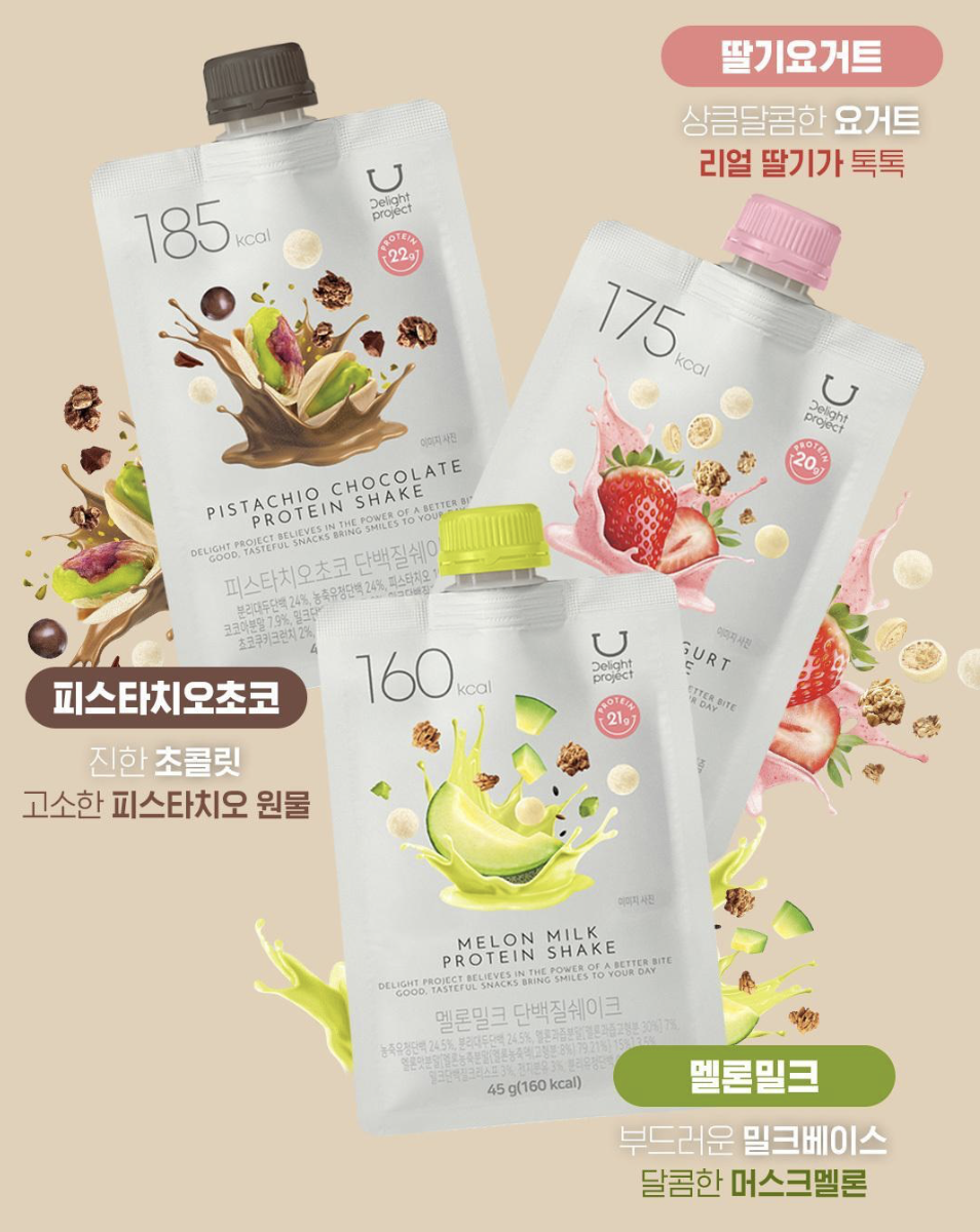 韓國人氣健康品牌 Delight Project 為你準備了多種 高蛋白質奶昔 讓健康生活開始變得更方便,更好味🤤 運動前後⛹🏻輕便的補充蛋白質 忙碌的工作中補充能量🔋 朱古力堅果 🍫 Nutty Chocolate 濃郁可可香氣,帶有堅果的微脆口感,甜度適中,像黑朱古力般不會太甜 甜薯穀物 🍠 Sweet Potato & Grains 帶有蜜糖番薯的自然甜味,混合穀物香氣,口感溫潤,適合喜歡健康甜味的人 粟米蛋糕🌽 Corn & Castella 有點像日本罐裝玉米湯的味道,香甜順口,帶有蛋糕般的柔和香氣 士多啤梨優格🍓 Strawberry Yogurt 草莓的果香與酸甜優格融合,口感清新,適合喜歡水果系清爽風味的人 蜜瓜牛奶🍈 Melon Milk 清甜哈密瓜香氣融合柔滑牛奶,入口清爽,帶有夏日水果的輕盈感 朱古力開心果🍫 Pistachio Chocolate 濃郁可可基底搭配開心果的堅果香,帶來層次感十足的風味 黑芝麻黃豆⚫ Black Sesame Seed & Injeolmi 濃厚芝麻香,搭配黃豆粉的獨特風味,口感扎實,適合喜歡傳統韓式甜點風味的人 每包含有 高蛋白質(約19g),熱量約 170大卡左右,低卡低脂 幫助肌肉修復、提升飽足感 🏋🏻‍♀️ 適合 代餐、健身後補充、忙碌上班族快速營養補給🚀 🥛搭配水、牛奶或燕麥奶沖泡,口感更佳 規格:7袋 / 套 產地:韓國
