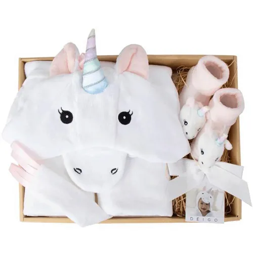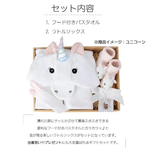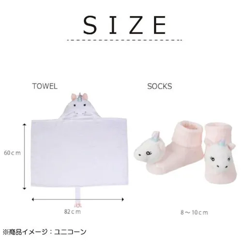 ### 日本直送 DEIGO人氣寶寶套裝 - 獨角獸👶🎁|連帽浴巾 + 搖鈴襪