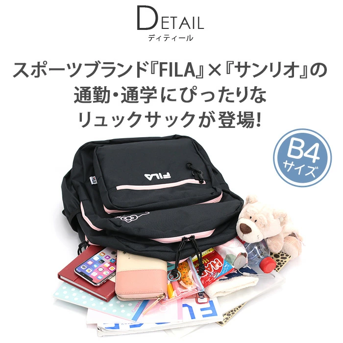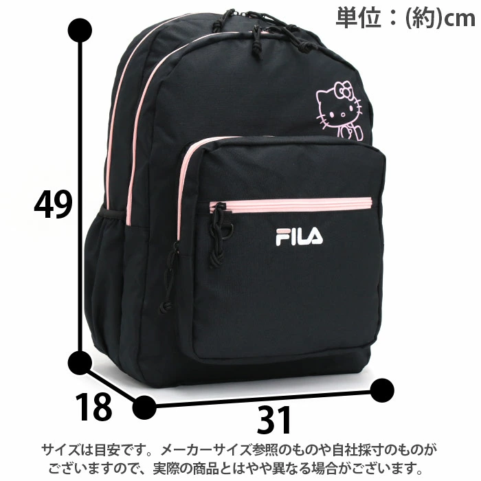 知名運動品牌 FILA 聯乘 Sanrio,推出超人氣 雙層背包!💖 簡約純色聚酯纖維面料,配上可愛 Sanrio 卡通人物印花,既有 運動感又充滿 少女心,無論返工返學、旅行出街都啱用。 🌟 產品特色 呢款 FILA 背包 採用簡約純色聚酯纖維面料,融合咗 運動 品牌嘅型格同 Sanrio 嘅 可愛 元素,完美展現 少女心!😍 ▪️ 超大容量 主隔層: 輕鬆容納 B4 尺寸物品,內置口袋幫你分門別類,收納無難度! ▪️ 貼心 副隔層設計: 方便擺放雜誌、小物,外出更就手! ▪️ 多功能外袋: 側袋、前袋設計,分類收納一目了然! ▪️ 背面拉鍊: 獨特設計,唔使除低個袋都可以快速攞嘢,超方便! ▪️ 透氣背負: 網布背部設計,長時間背都唔會焗促,舒適 度滿分! ▪️ 可調節肩帶: 體貼唔同身型需要,背負更輕鬆! 🎀 收納空間多多: 1 個大內袋、2 個側袋、2 個帶 F 形扣前袋、1 個 D 形環,實用到震! 💕 角色選擇 ▪️ Hello Kitty 🐱 ▪️ Kuromi 🖤 📏 包裝尺寸 ▪️ 尺寸:約高49 x 寬31 x 深18cm ▪️ 材質:聚酯纖維 ▪️ 重量:約 500g ▪️ 產地:中國 (🇯🇵 日本直送)