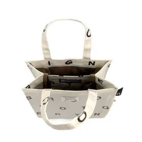 ROOTOTE 圖案層壓方形袋,設計充滿玩味,無論日常出街定短途旅行都啱用!✨ 🌟 產品特色 ▪️ 採用光滑覆膜材料製成,即使燃燒都無害,環保安心 ▪️ 趣味設計:隨機排列嘅 字母圖案 + 若隱若現嘅 幽靈 Obake,型格又可愛 ▪️ 防污防水:污漬、水滴輕鬆一抹即淨,超實用 ▪️ 多用途尺寸:副包、主包都得,短途旅行、遛狗、午餐袋都完美勝任 ▪️ 開合方式:外側磁吸拉鍊口袋 + 內側口袋,方便收納 🎨 款式選擇 A. 黑色 🖤 B. 象牙色 🤍 📐 包裝尺寸 ▪️ 尺寸:約 24 x 24 x 10.5cm ▪️ 手柄長度:約 31cm ▪️ 材質:不含棉 / 鄰苯二甲酸酯嘅 PVC 層壓板 📍 產地:中國(日本直送)
