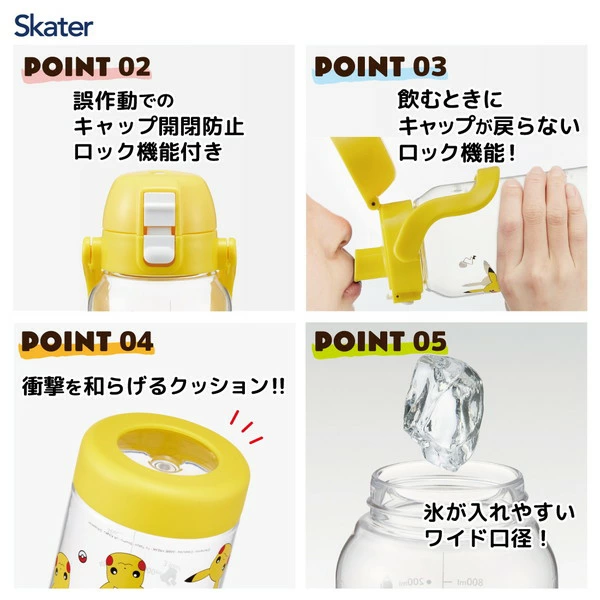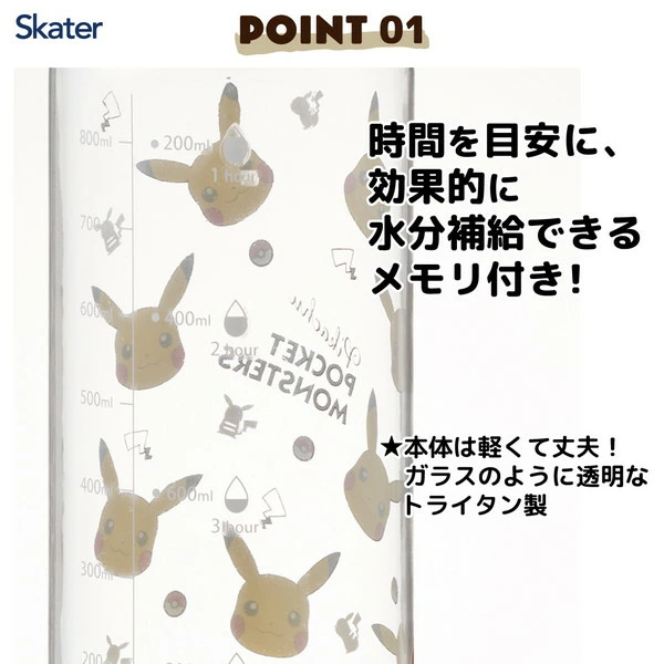 日本直送 Skater 有刻度大容量透明水樽1000ml - Pokemon|適合大人小童|補水神器