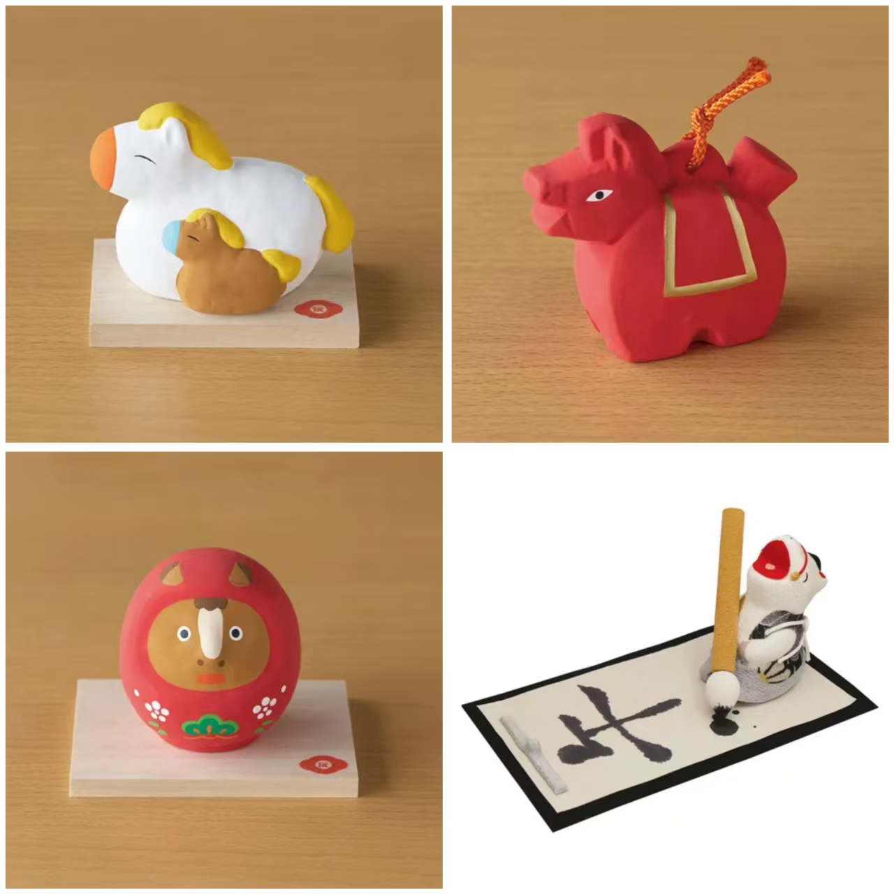 ✨ 讓我們在2026年像駿馬一樣飛躍吧! 這些款 日本製生肖飾品 正是秉持著這樣的理念而設計,為你帶來吉祥、優雅與好運。無論是送禮或自用,都能為新年增添一份溫暖氛圍。 🐴 海雲親子 (陶器)🐴 尺寸:約高 6.6 cm x 寬 9.1 cm x 深 5.2 cm 描繪馬爸馬媽與孩子的溫馨場景 🐴👨‍👩‍👧,柔和的表情定能撫慰心靈,為新年添上親情與幸福感。 🐴 好運驅邪午鐘 (陶器) 🐴 尺寸:約高 6.5 cm x 寬 7.3 cm x 深 3.5 cm 英姿颯爽的紅馬泥鈴 🔔,寓意驅邪避兇,守護家宅平安,為新年注入滿滿正能量。 🐴 好運達摩馬 (陶器) 🐴 尺寸:約高 8.5 cm x 寬 7.9 cm x 深 8 cm 馬造型的達摩不倒翁 🎊,象徵吉祥與堅毅,寓意新的一年勇往直前、好運不倒。 🐴 新年書法 (人造絲縐紙等) 🐴 尺寸:約寬 11 cm x 深 19.5 cm x 高 9 cm 一匹笑容燦爛的馬 🖌️,正在揮毫書寫書法,為新年添上文化氣息與藝術美感。 📍產地 : 日本 ▪️ 每件作品皆為手工陶器,形狀、尺寸及燒製顏色可能略有差異。 ▪️ 因釉料及燒製條件不同,或會出現褪色、顏色不均或氣泡,屬正常工藝特色。