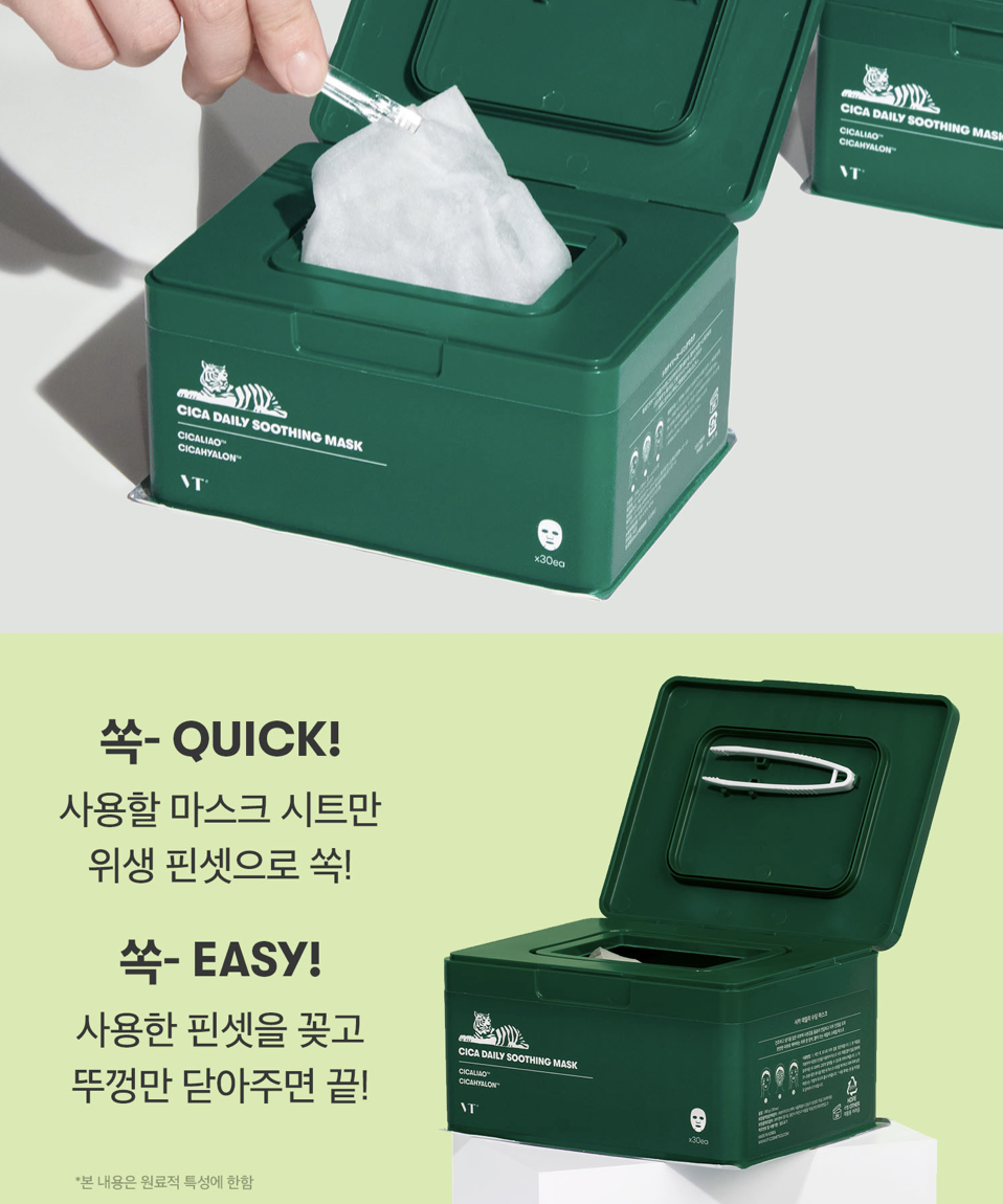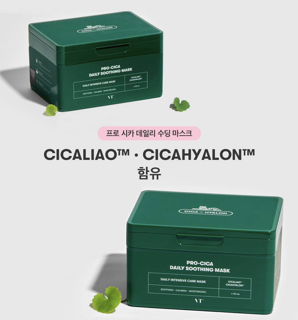 韓國 VT 高效 積雪草舒緩保濕鎮靜面膜 30片/盒|Pro Cica Daily Soothing Mask
